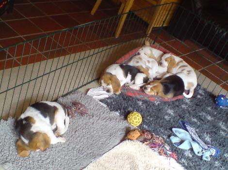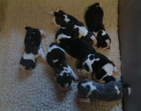 5 Rüden , 2 Hündinnen (5 Tricolor mottled, 1 Tricolor, 1 Blue)